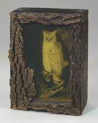 In the novel, an owl is significant and sought after object of desire for several characters, and it was Joseph Cornell's bird boxes that sparked the original idea, so I think I would like to create to pay homage and create one featuring an owl.